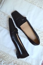 Chanel leather loafers, classic, chic and timeless in black. They feature a buckle with the Chanel logo.